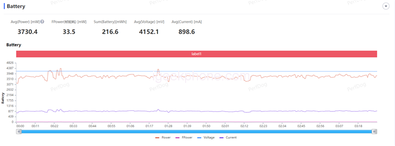 During the last battle, the game fluctuates to a certain extent, but the average frame rate is also 111.3 FPS. FPS shooting games test the reaction ability and hand speed, which is also normal. The average power consumption is lower than that of “QQ Speed,” only 3.7W.