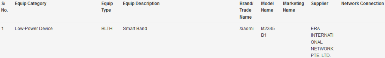 Igeekphone April 5 news, a few days ago, a model of “M2345B1” terminal products appeared in Singapore IMDA database, is expected to be the upcoming launch of Xiaomi mi band 9.