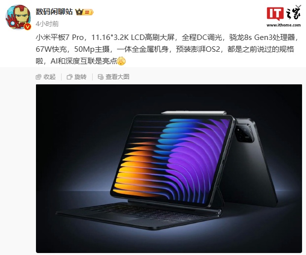 Igeekphone October 24 news, the new Xiaomi mi pad 7 series will be unveiled on October 29, equipped with 3.2K display, the third-generation Snapdragon 8s platform, blogger @digital chat station today announced more specifications of this new product.