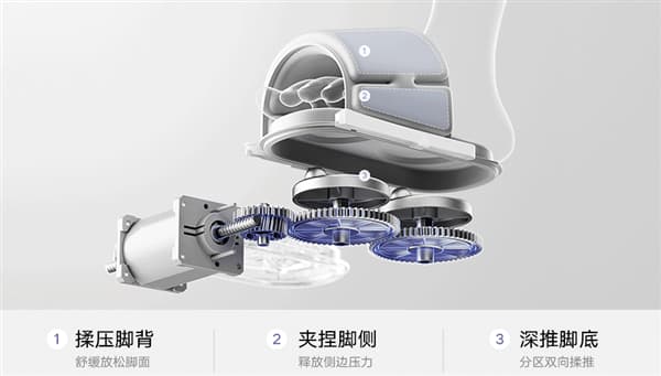 It is understood that this foot bath adopts a three-dimensional airbag wrapping design. The airbags encircle the top and sides of the feet, forming a three-dimensional massage system with the foot sole massage plate. As the airbags move rhythmically, it simulates the massage techniques of pressing, kneading, pinching, releasing and pushing.