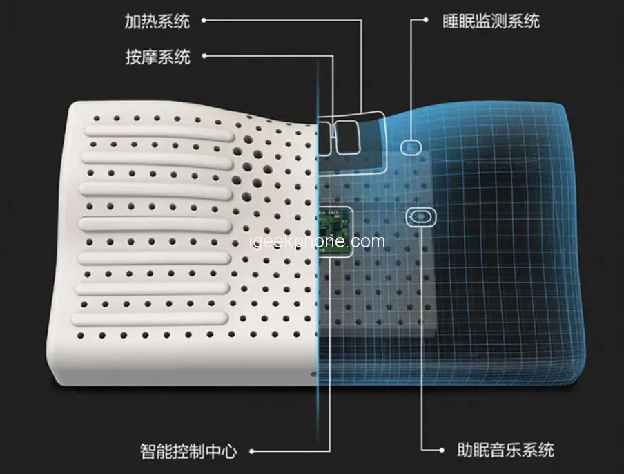 According to official information, the Xiaomi Mijia Smart Pillow has a built-in intelligent piezoelectric sensor, which can accurately capture heartbeat, breathing, body movement, and snoring. With the Al intelligent professional algorithm, it can monitor and record sleep status.