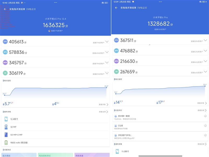 Comparing the two, the Xiaomi Pad 6S Pro 12.4 achieves an 11% improvement in single-core performance and an impressive 17% improvement in multi-core performance over the Xiaomi Pad 6 Pro. Going further back to the previous generation, the improvements are even more striking, with a 45% lead in single-core performance and a 48% boost in multi-core performance compared to the Xiaomi Pad 5 Pro 12.4.