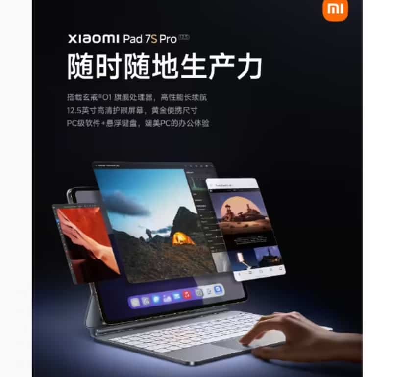 It is reported that the Xiaomi Pad 7S Pro is equipped with a 12.5-inch flagship screen, a 5.8mm thin and light body, a built-in 10610mAh large battery, 120W fast charging, and is also supported by PC-level software and a PC-level floating keyboard, claiming to offer an experience comparable to that of a computer.