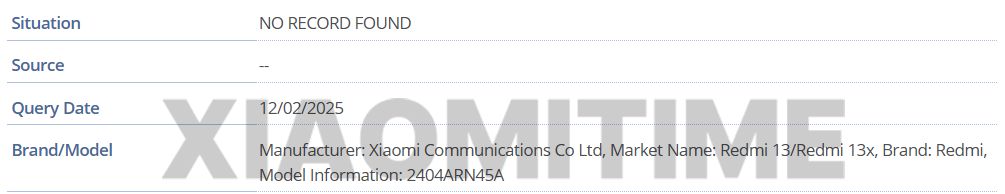 Igeekphone February 13 news, science and technology media xiaomitime published a blog post yesterday (February 12), by mining the GSMA IMEI database, found the trace of Xiaomi REDMI 13X mobile phone, model 2404ARN45A.