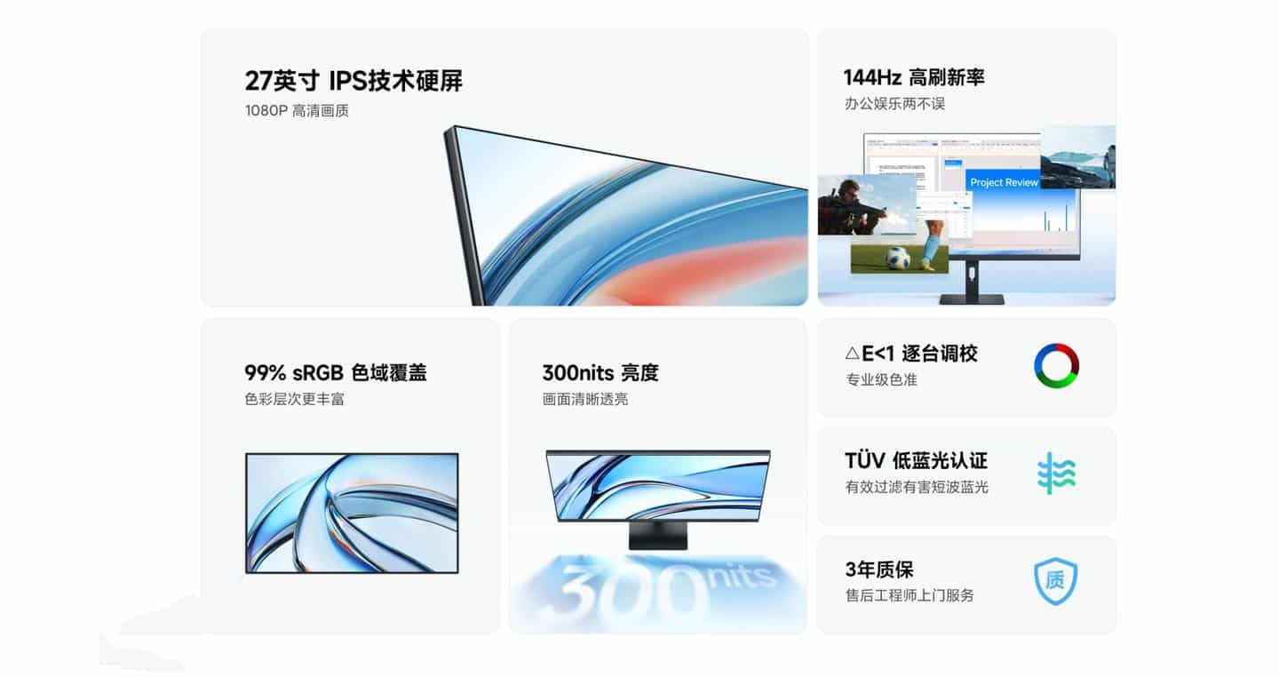 According to Xiaomi, the panel of this monitor adopts IPS technology, with a viewing Angle of up to 178° and a resolution of 1920*1080, providing all-round visual support for office work, daily movie-watching, gaming, etc. The panel supports a high refresh rate of 144Hz, which enables smoother browsing of long documents and switching between multiple tasks, while also providing a good gaming experience.