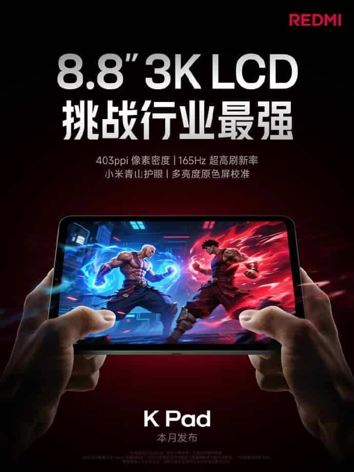 According to the official introduction, in terms of the screen, the K Pad is equipped with an 8.8-inch “3K LCD” screen, with a pixel density as high as 403ppi, far exceeding the industry average level. In addition, this screen also supports an ultra-high refresh rate of 165Hz, which makes the picture smoother in scenarios such as reading, browsing web pages and watching videos. Meanwhile, the screen of the K Pad also adopts the rare multi-brightness original color screen calibration technology, making the indoor and outdoor colors more accurate. The official claim is that this is the most powerful LCD screen currently available on REDMI.