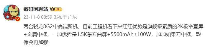 Igeekphone on November 8 news, the blogger @digital chat station today brought the latest news of two Snapdragon 8 Gen 2 high-end new machines, which are expected to be Xiaomi Redmi K70 and OnePlus Ace 3.