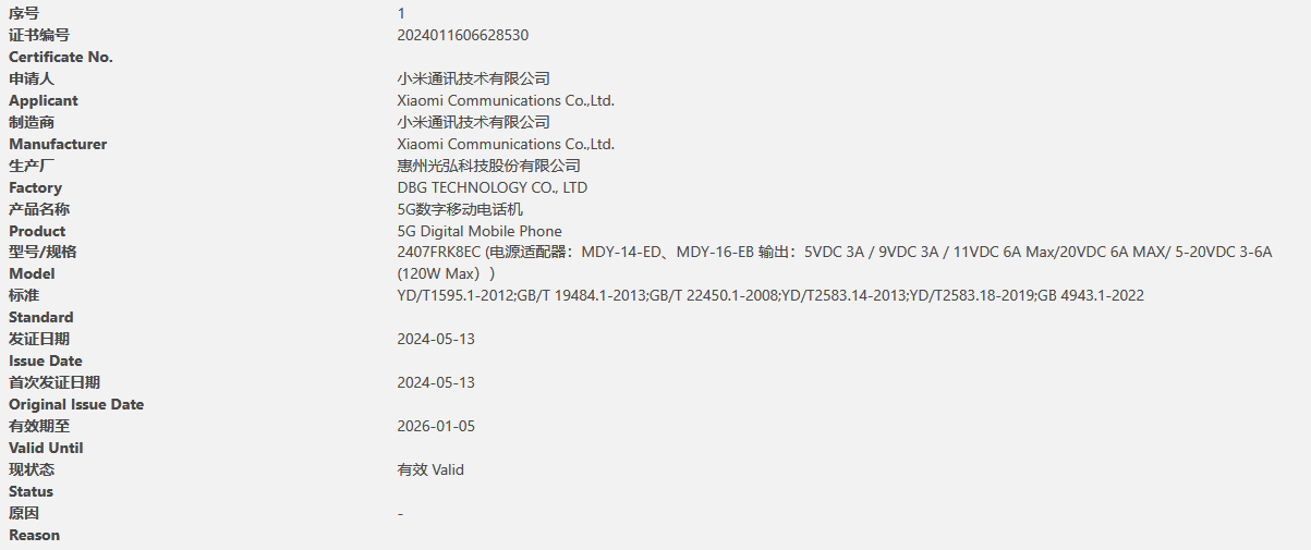 May 13, Xiaomi has a model of 2407FRK8EC mobile phone new products through the national 3C quality certification, combined with the previous exposure of information is Xiaomi’s upcoming Redmi K70 supreme version.