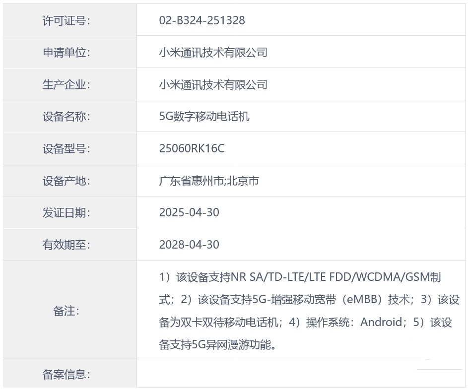 Igeekphone News, May 20th: The Xiaomi REDMI K80 Ultra mobile phone has passed the certification of the Ministry of Industry and Information Technology of China (MIIT), with the model number 25060RK16C. The code shows that the rated battery capacity is 7270mAh, and the estimated typical value is 7500mAh.