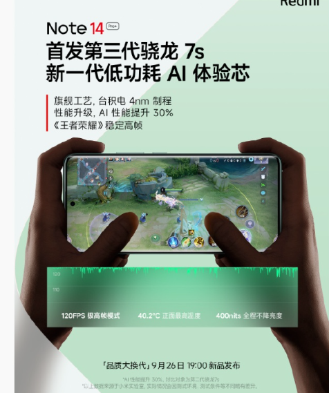 Igeekphone on September 24 news, Wang Teng, deputy general manager of the Marketing Department of Xiaomi China and general manager of Redmi brand, announced today that Redmi Note 14 Pro+ mobile phones will launch the third-generation Snapdragon 7s chip, and are equipped with 6200mAh Jinsha Jiang battery.