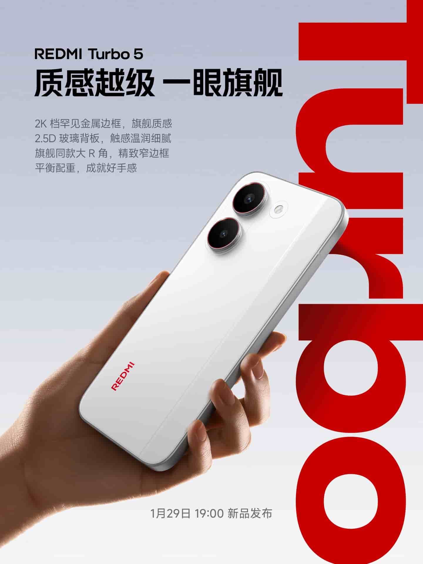 According to an earlier report by Igeekphone, Xiaomi Redmi Turbo 5 series of mobile phones have been scheduled to be released on January 29 at 19:00. The appearance of both the Max and standard versions has been made public.