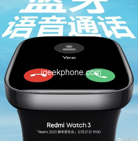 Xiaomi will hold the Redmi 2023 New Year Conference tomorrow night (19:00 on December 27), launching the Redmi K60 series of mobile phones and a variety of new wearable products. Xiaomi officially showcased the new Redmi Watch 3 large-screen watch today.