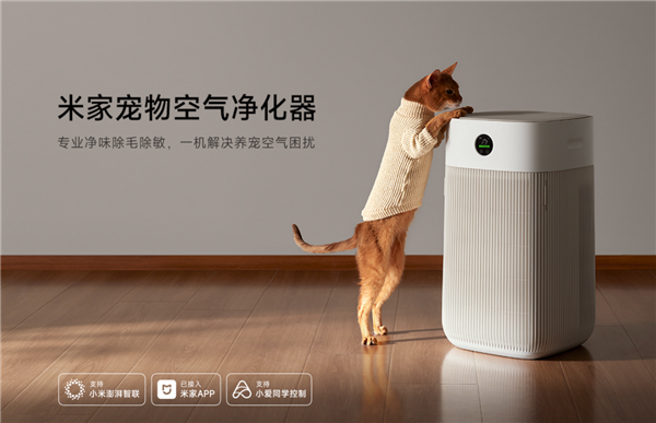 In other aspects, Mi Jia pet air purifier supports Mi Jia App+ Xiao Ai students intelligent control, equipped with cute pet version display screen, the top of the cat is designed to sit and sleep platform and pet supplies storage bin, using anti-bite type power cord, pet lock, pet care grille, to prevent the baby pet PAWS are stuck, purifier tipping power off.