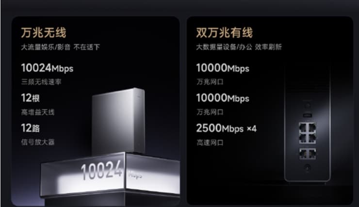 In terms of network performance, it can be called a “speed beast”. The wireless end supports a tri-band 10-gigabit rate, with a maximum speed of up to 10024Mbps.