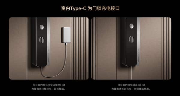 Emergency support includes Type-C emergency power supply outside the door and wireless reverse charging for mobile phones.