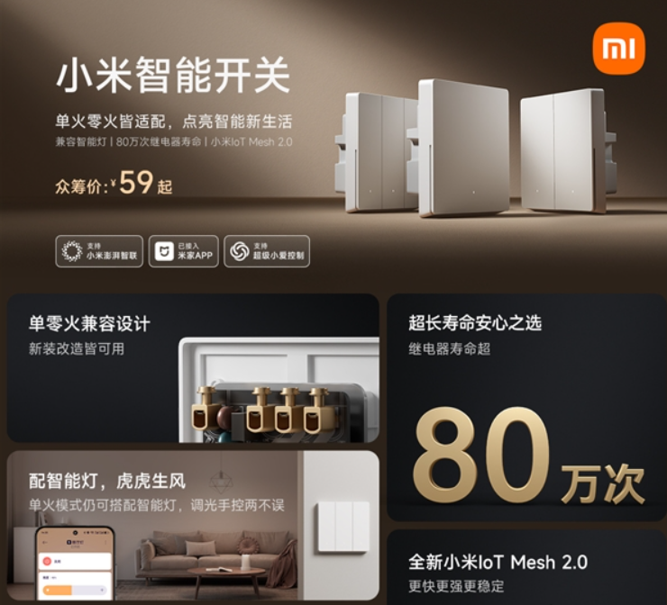 Igeekphone March 3 news, Xiaomi today released a new Xiaomi smart switch, will open on March 5 crowdfunding, pricing from 59 yuan, $8.19.