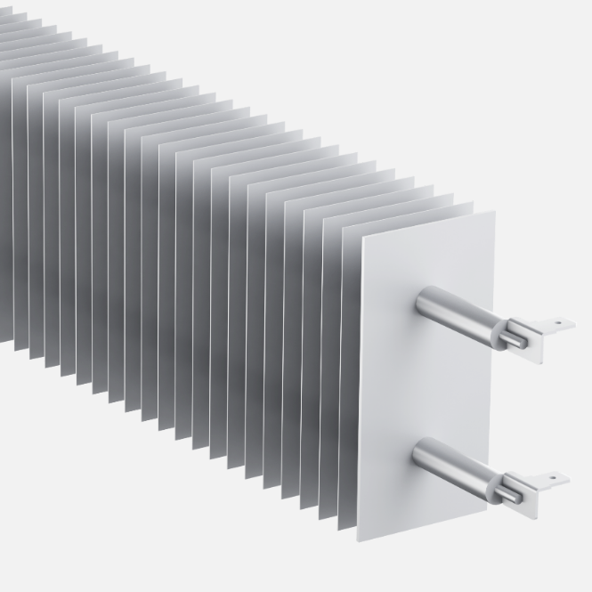 A newly upgraded construction using 72 aluminum heating plates transfers and distributes heat up to an area of ​​up to 46m2. 2200W power means that the room heats up quickly.