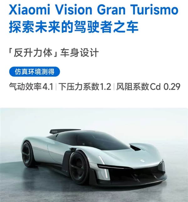 The Vision Gran Turismo (Vision GT) pure electric concept supercar launched by Xiaomi is a vehicle specially developed by Xiaomi for the Vision Gran Turismo project of the classic racing game “Gran Turismo”. It is also the first concept car of a Chinese brand in the history of this project.