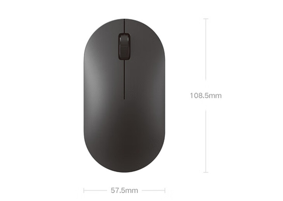 Xiaomi Wireless Mouse Lite 2 has a smaller size, taking into account the small hand type, with 108.5×57.5×35.6mm product size, weight 45g (without battery), supporting 5 AA battery power.