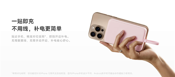 The product has 2 built-in 5000mAh battery cells, which can charge iPhone 16 Pro for about 2 times, provide 7.5W magnetic wireless charging, with 13N magnetic attraction, accurate adsorption, suitable for iPhone 12 and subsequent models, wireless charging automatic induction, one suck and charge.