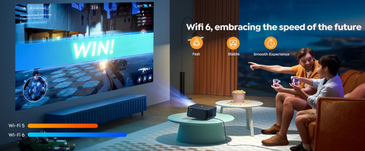 Connectivity: Seamlessly connect your devices with Bluetooth 5.0 and WiFi-6 capabilities. The projector also supports NFC screencast for effortless sharing of content from compatible devices.