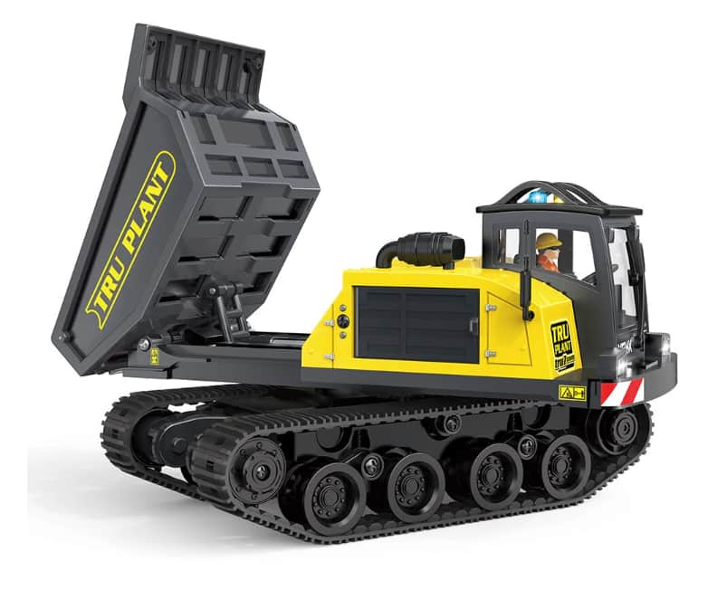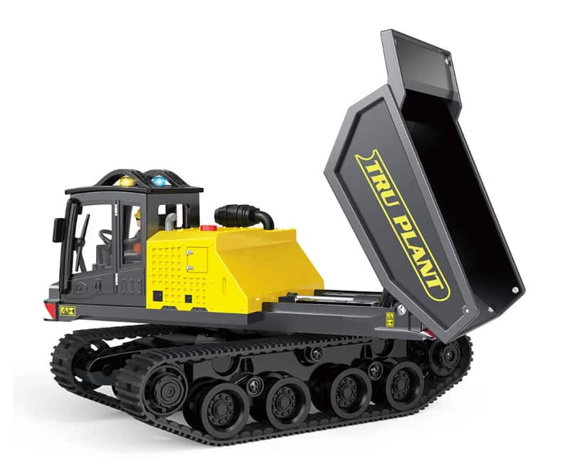 Realistic Dumping Mechanism: The heart of the truck is its hydraulically simulated dump bed. With the push of a button on the transmitter, the bed rises smoothly and lowers back down, ready to haul your miniature payload (small gravel, sand, or even candy!).