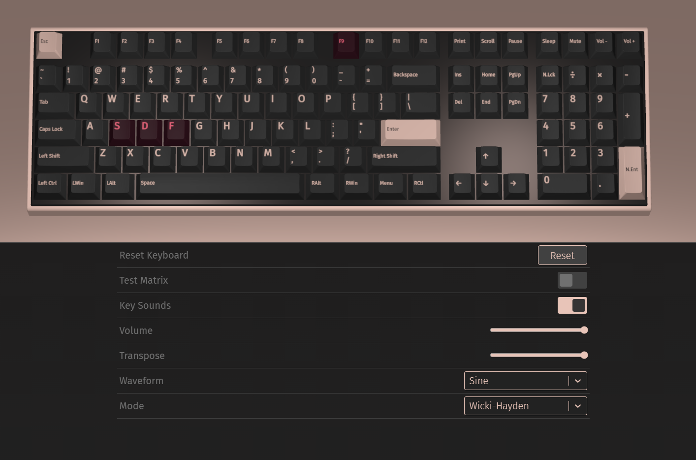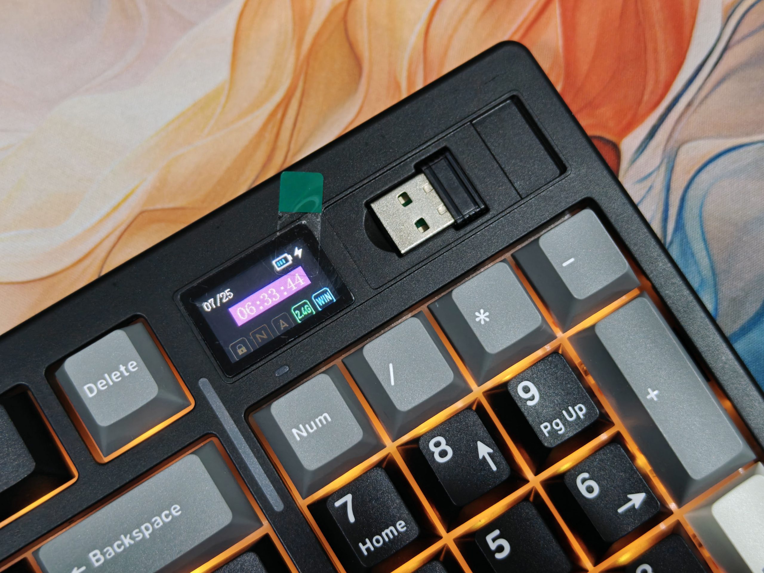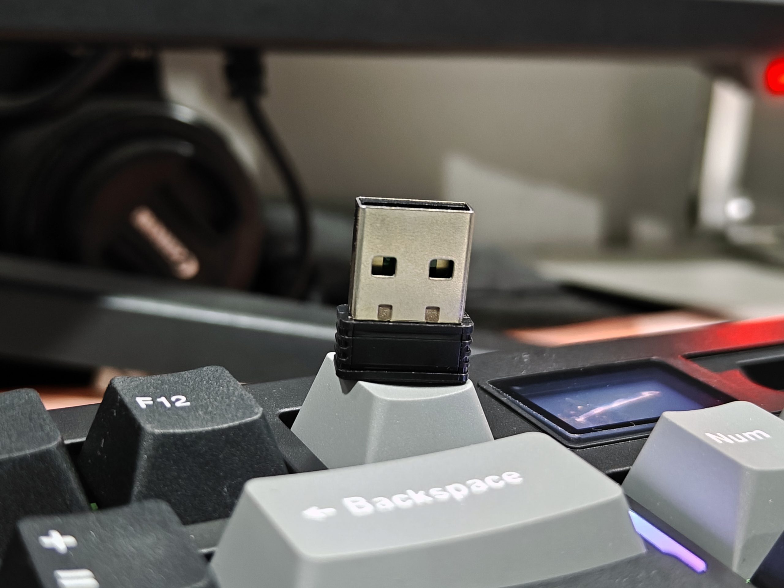 Checking the battery level is super easy. Just press Fn + Right Ctrl, and the keyboard gives you a quick visual readout: the RGB and LOG LEDs briefly turn off while the number keys from 1 to 0 light up to show the current battery percentage. Let go of the keys, and everything returns to your custom lighting setup.