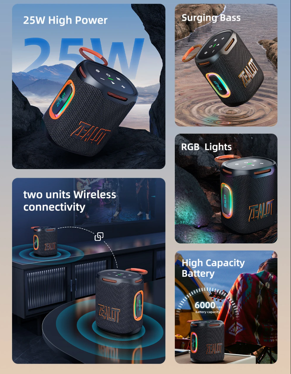 In a market crowded with portable speakers that promise more than they deliver, the ZEALOT S122 25W Portable Speaker stands out by focusing on what truly matters: powerful sound, solid build quality, and dependable performance. Designed for users who want strong audio without carrying bulky equipment, the S122 is equally suited for indoor listening, outdoor gatherings, and casual travel. With modern Bluetooth technology and a high-capacity battery, it offers a well-rounded audio experience at a competitive price point.