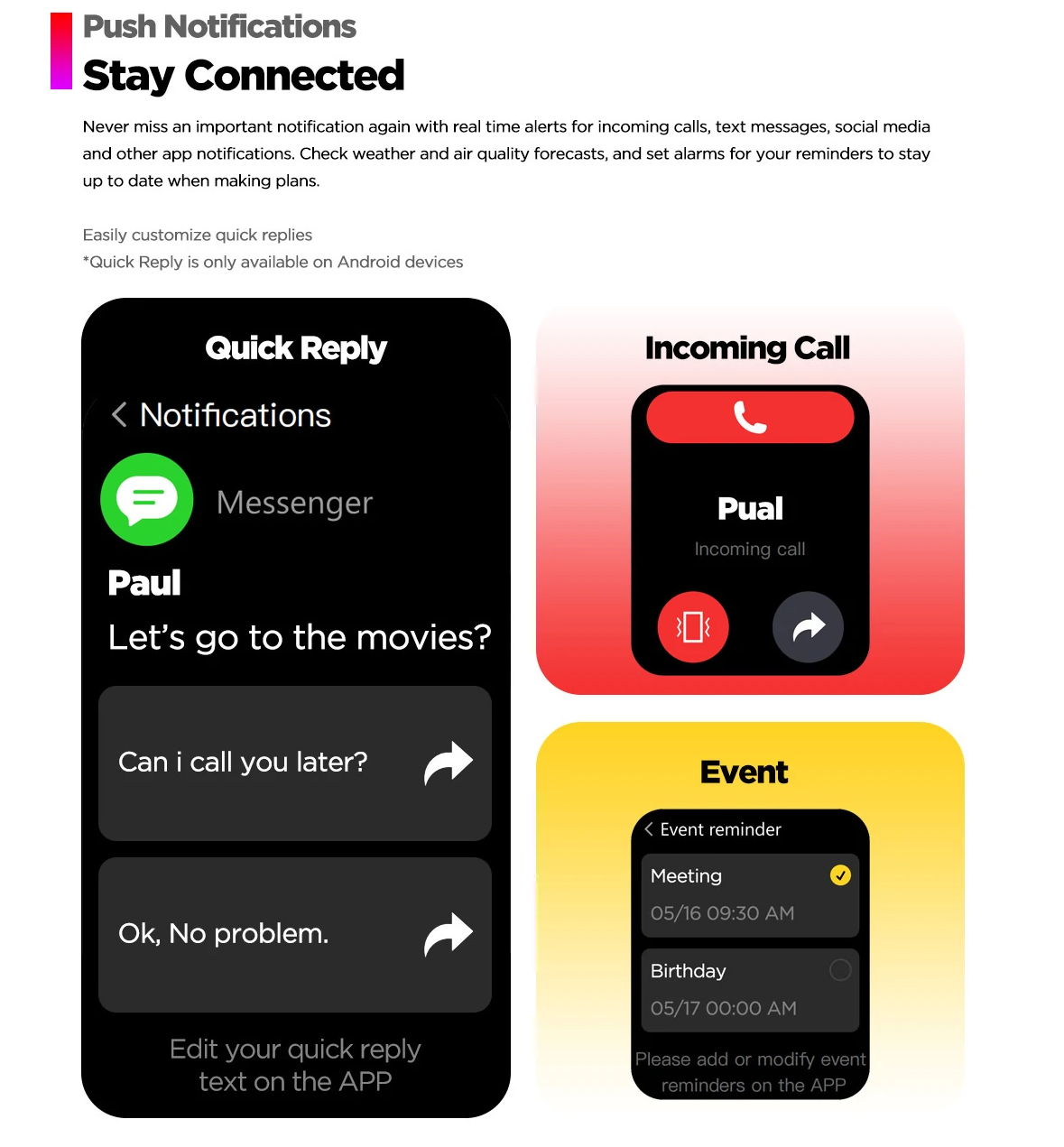 You can use the built-in GPS tracker and activity modes to record your workouts. Plus, you can get notifications on Beyond 2: call reminders and new message notifications. You can connect to the smartwatch via Bluetooth 5.0, which supports devices compatible with Android 4.4 or later or iOS 8.2 or later.