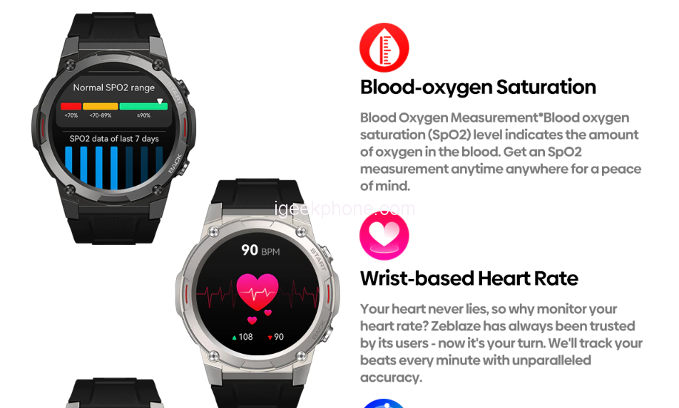 The Zeblaze Vibe 7 Pro Smartwatch comes with a range of features that make it a versatile and useful tool for staying organized and connected. It includes fitness tracking features such as a heart rate monitor, step tracker, and sedentary reminder to help you stay active and healthy. The watch also includes a notification function that allows you to receive alerts and messages from your smartphone right on your wrist. Additionally, the watch includes a stopwatch, timer, and alarm function to help you keep track of your daily tasks and activities.
