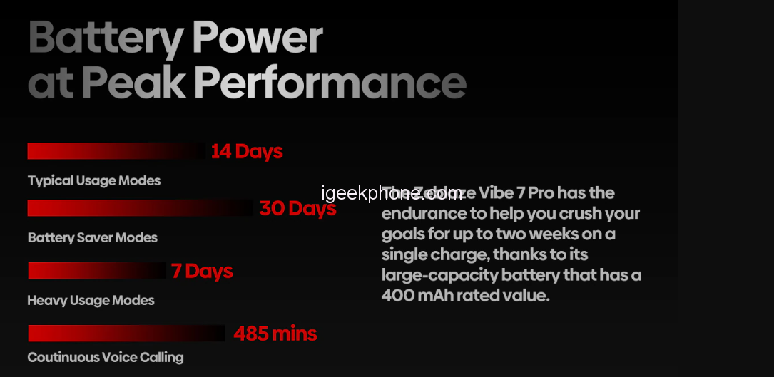 One of the standout features of the Zeblaze Vibe7 Pro Smartwatch is its long battery life. The watch boasts a 400mAh battery that can last up to 7 days on a single charge, making it perfect for those who need a watch that can go the distance. The watch also includes a low-power mode that can extend the battery life even further, making it perfect for those long trips or extended periods of use.