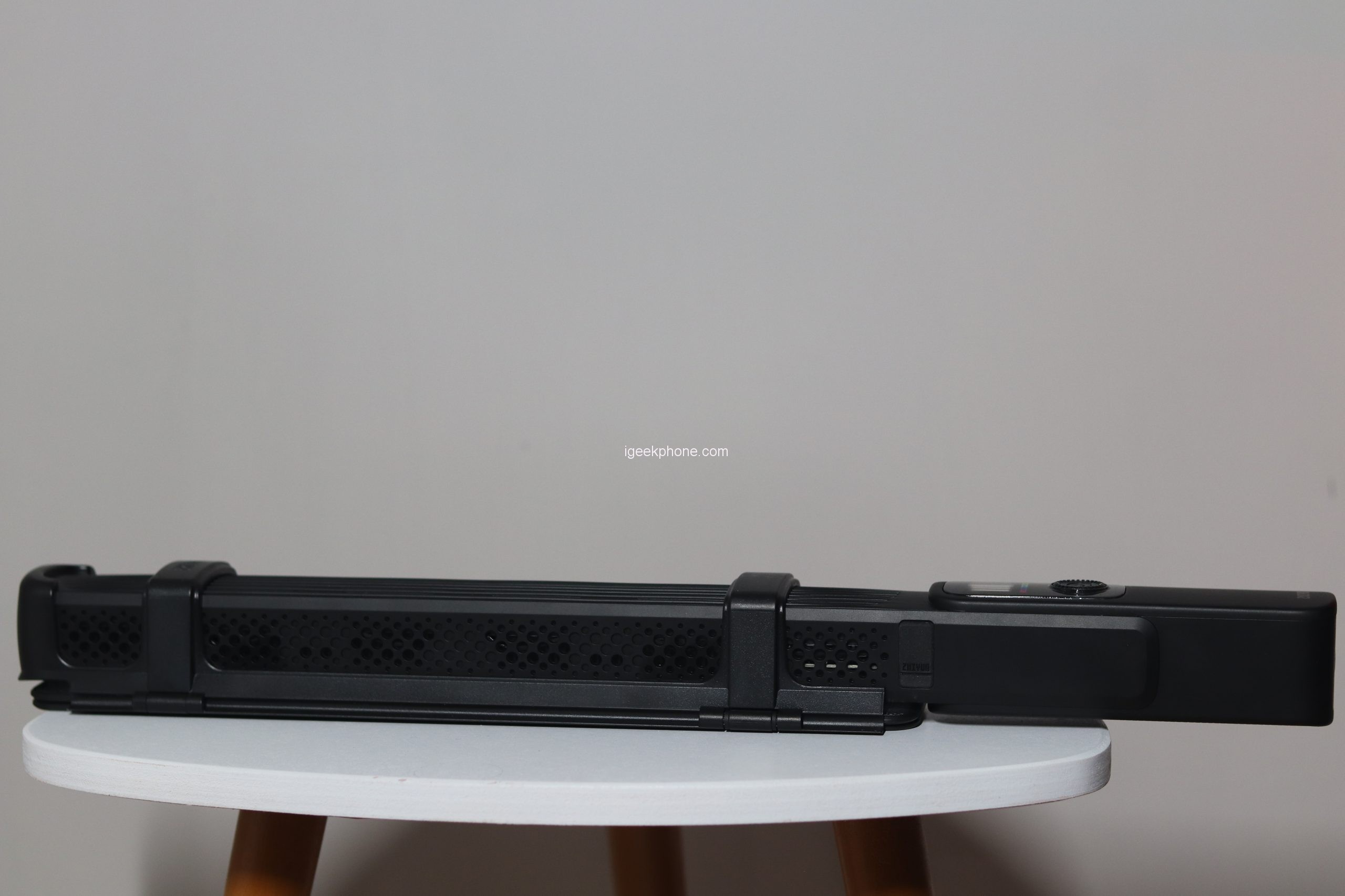 On the back of the device, there are 6 fans that are present. These fans are designed to remain off for the majority of the time as the heatsink is able to act passively. However, after 10 minutes of intensive use, these fans will be activated. Despite this, the noise produced by the fans is acceptable and should not cause any disturbance.