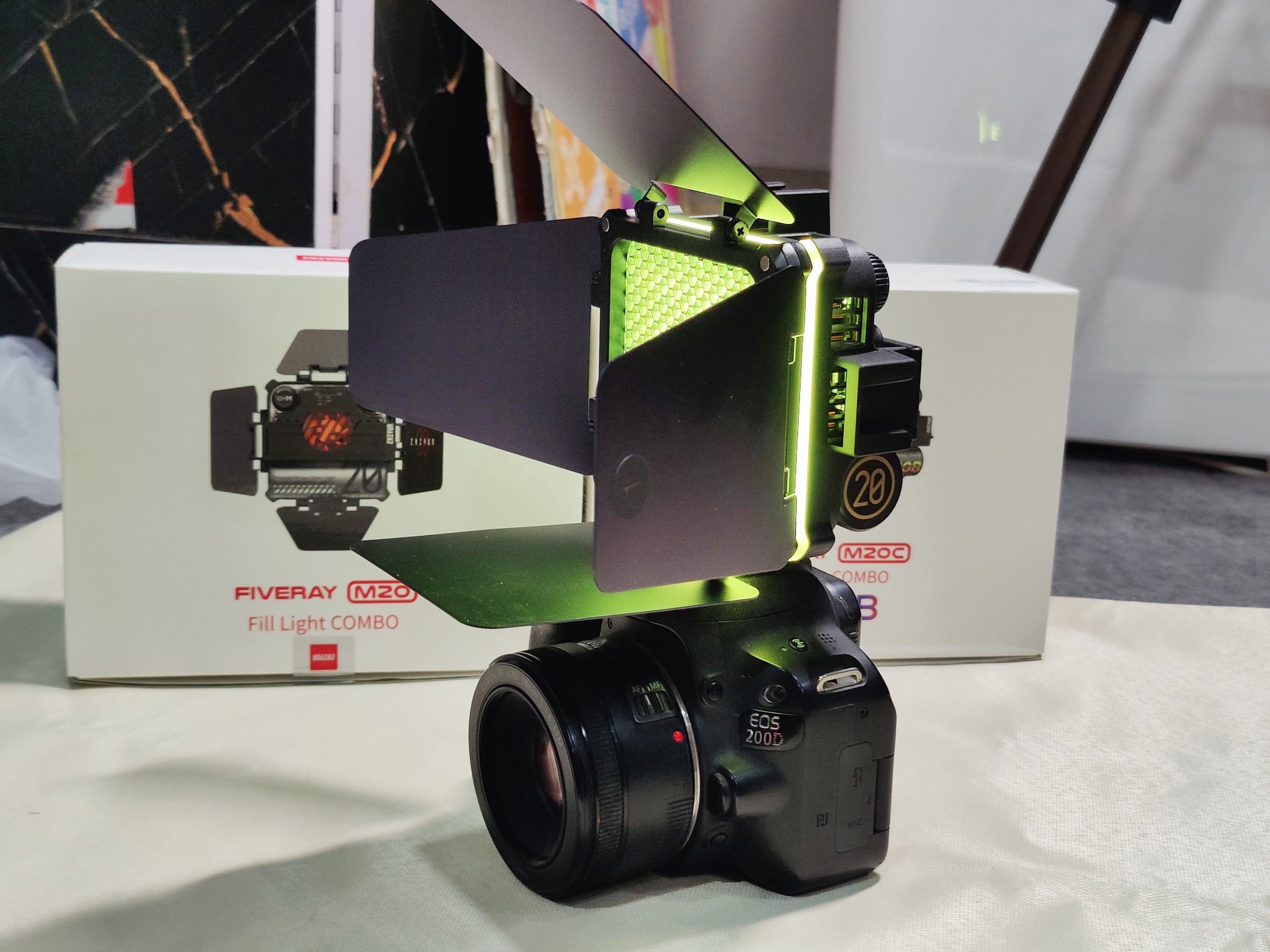 I got interested in this new lighting gear called the Zhiyun Fiveray M20/M20C lights. They’re small but strong lights that can make my photos and videos look amazing. When I held one, I was surprised at how light it was, just 200 grams. Even with all the extra stuff, it was still easy to carry at 370 grams.