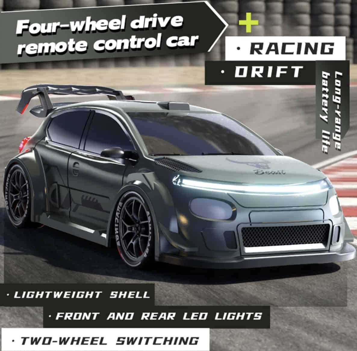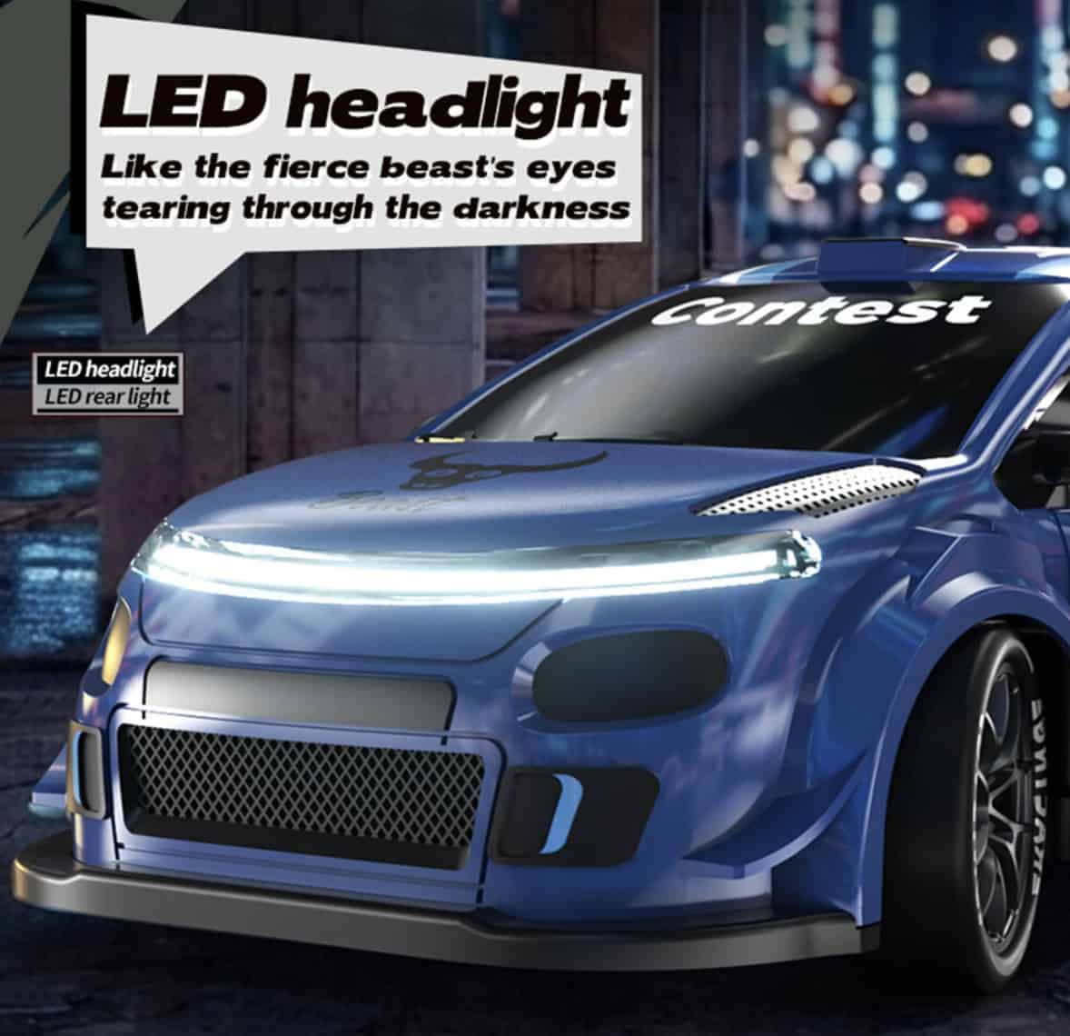 - Drift‑ready: Four‑wheel drive and LED lights elevate play value.