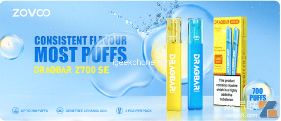 As a prize dedicated to innovative design, DRAGBAR Z700 GT uses a stylish and modern design and is only 9mm thick, making the Z700 GT one of the thinest e-cigarettes on the market today. The design has been hailed as a model of industrial design for its extreme aesthetic appearance. This ultra-thin disposable e-cigarette is small and portable, making it perfect for frequent business travelers. Despite its ultra-thin and lightweight design, the device provides up to 700 suctions, combined with a 2ml liquid capacity, for a longer-lasting vaping experience. Its pre-filled fume system offers a variety of flavors, ensuring that users can find the perfect flavor to suit their preferences.