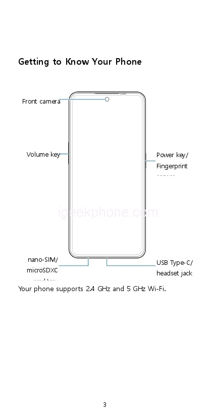 In addition, the user manual shows the key layout of the machine. The volume button is located on the left side of the fuselage, the power button is located on the right side of the fuselage, and the power button integrates the fingerprint recognition function. The bottom of the fuselage is a USB Type-C interface, and there is no 3.5mm headphone jack. In terms of detailed configuration, the machine does not have more specific information, and we look forward to the official release of the machine.